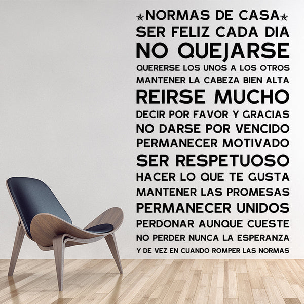 Spanish Version NORMAS DE CASA House Rules Wall Sticker